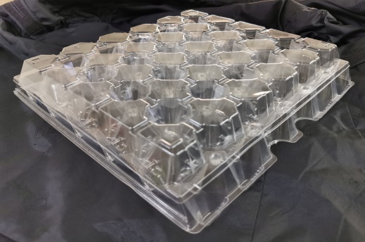 PET Trays stacked of 20 layers would be almost 2 trays less in height – if compared to same stack of 20 Paper trays layers’ high are placed side by side during stacking..